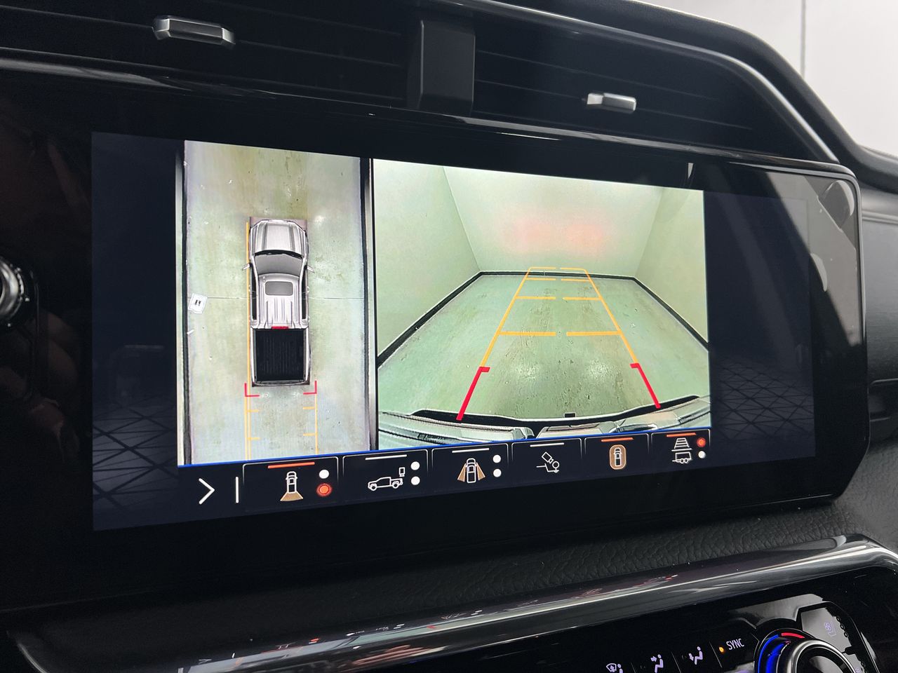 - Allows driver to see inside the cargo bed on the infotainment display to help with 5th wheel or gooseneck hitching and to check cargo