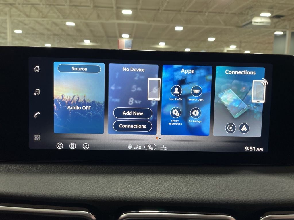 - Radio: AM/FM w/RDS/MP3 -inc: 4 speakers, 12.3" NissanConnect multimedia center display, Bluetooth® hands-free phone system, streaming audio via Bluetooth®, hands-free text messaging assistant, Siri Eyes Free, Google Assistant voice recognition, wireless Apple CarPlay and Android Auto and (2) front USB connection port (type C)