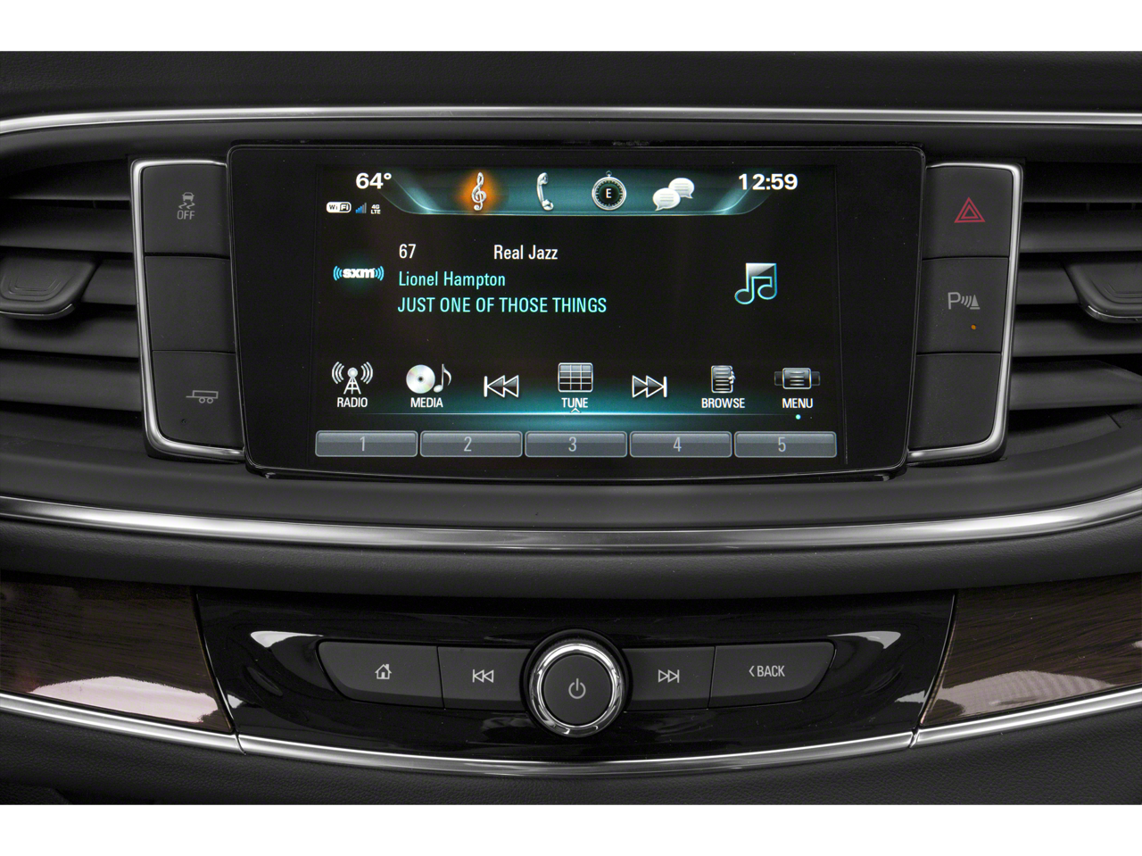 - Audio system, Buick Infotainment System with Navigation, AM/FM stereo, SiriusXM, with 8" diagonal Color Touch Screen includes 2 USB ports inside center console, auxiliary input jack, and Bluetooth streaming for audio and select phones and Phone Integration for Apple CarPlay and Android Auto capability for compatible phone